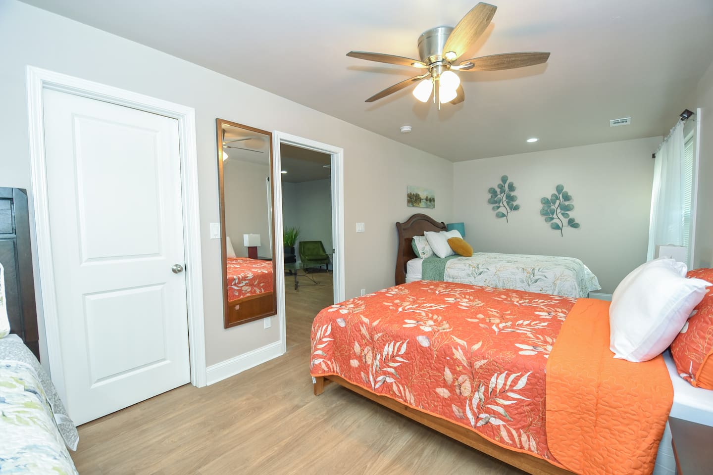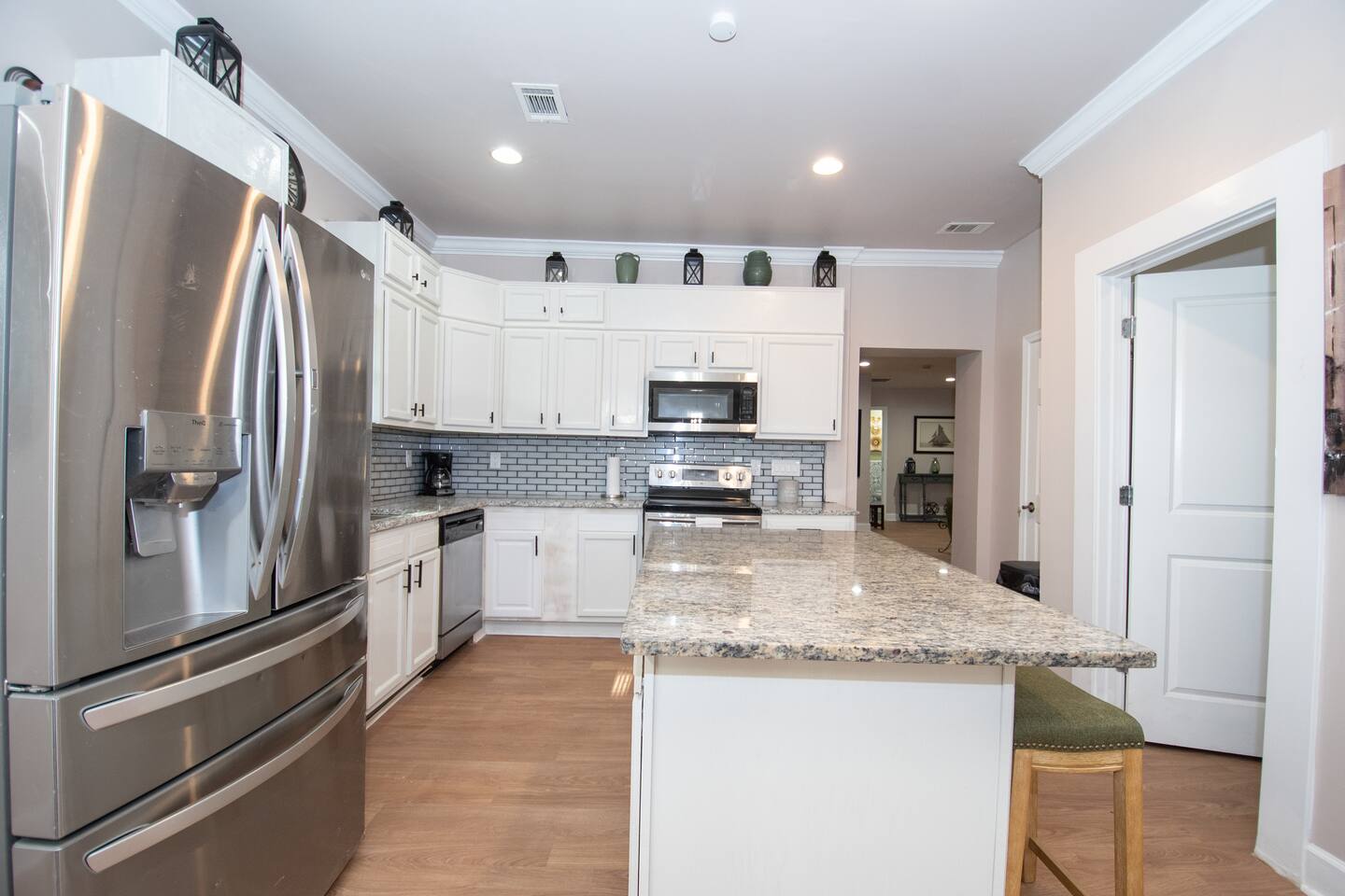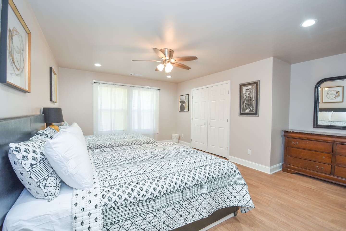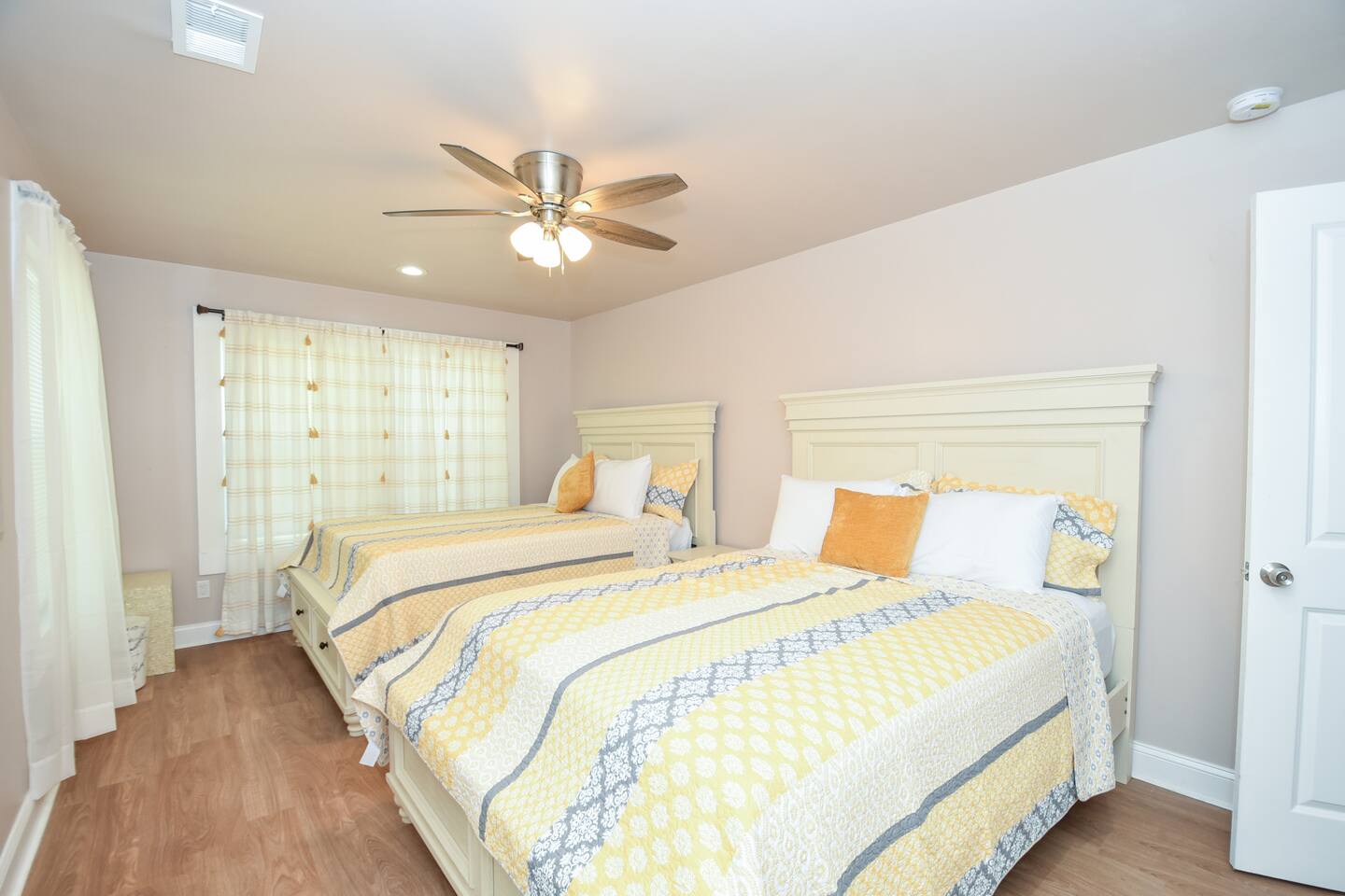 BEDROOMS: This home sleeps 20 guests in 6 bedrooms. See bed count below: Bedroom 1 one queen size bed Bedroom 2 one queen size bed Bedroom 3 two queen size bed Bedroom 4 two queen size beds Bedroom 5 two queen size beds Bedroom 6 three queen size beds BATHROOMS: 4 Bathrooms The bathroom are stocked with toiletries (shampoo, conditioner, body wash, lotion, soap), towels, washcloths, and a hairdryer. This home sleeps up to 22 guests between 6 private bedrooms. Four full bathrooms give your group plenty of space to prepare for your day. ENTERTAINMENT: The house is equipped with flat-screen smart TVs for your use. Note : The TV comes with Netflix access along with 200+ roku channels etc. You and your group will enjoy relaxing in your bright and airy, open concept living room with modern and comfortable furnishings. LIVING ROOM/KITCHEN: -Complimentary snacks & bottled water available for the guests -The kitchen is equipped with brand new stainless steel cookware Laundry room with full-sized washer & dryer